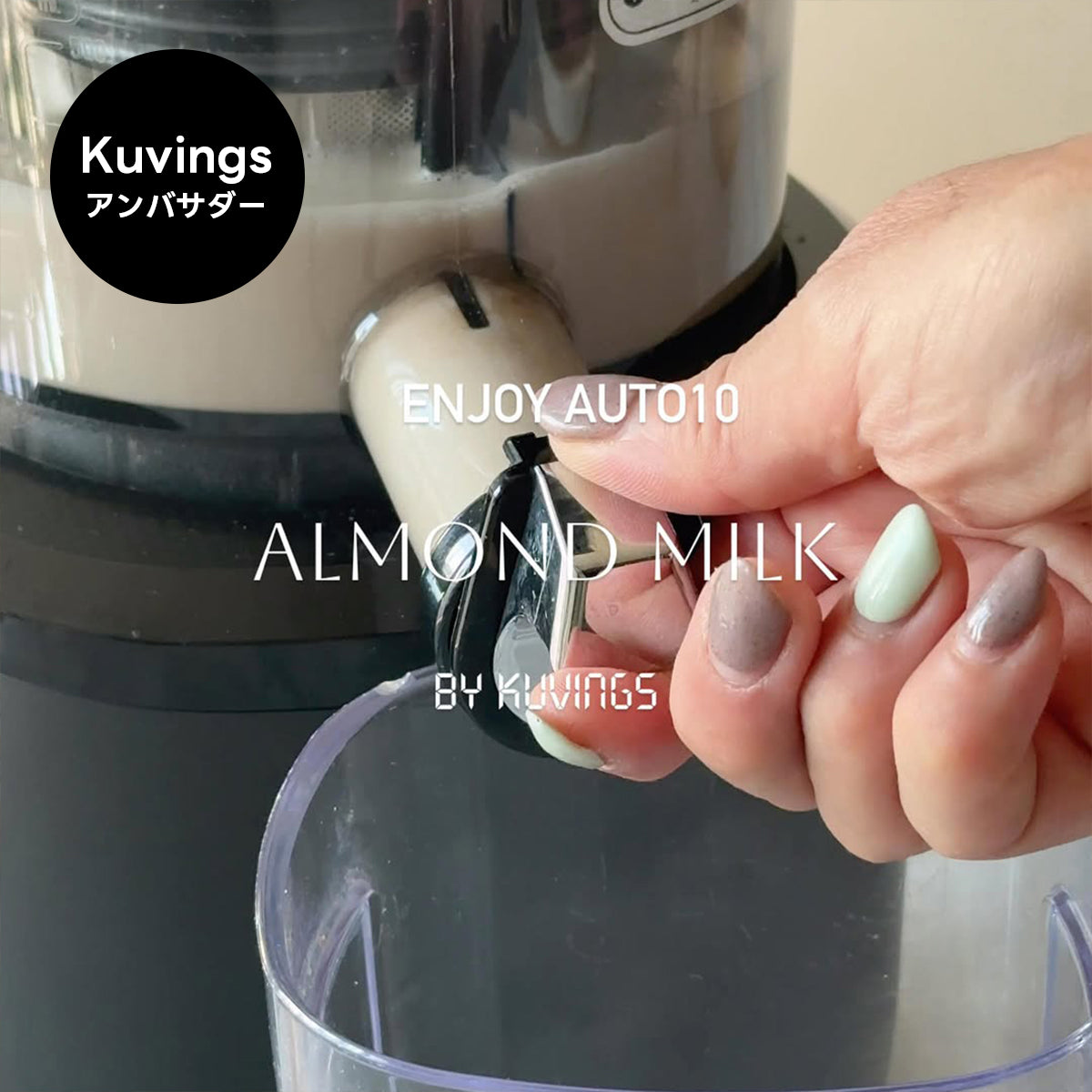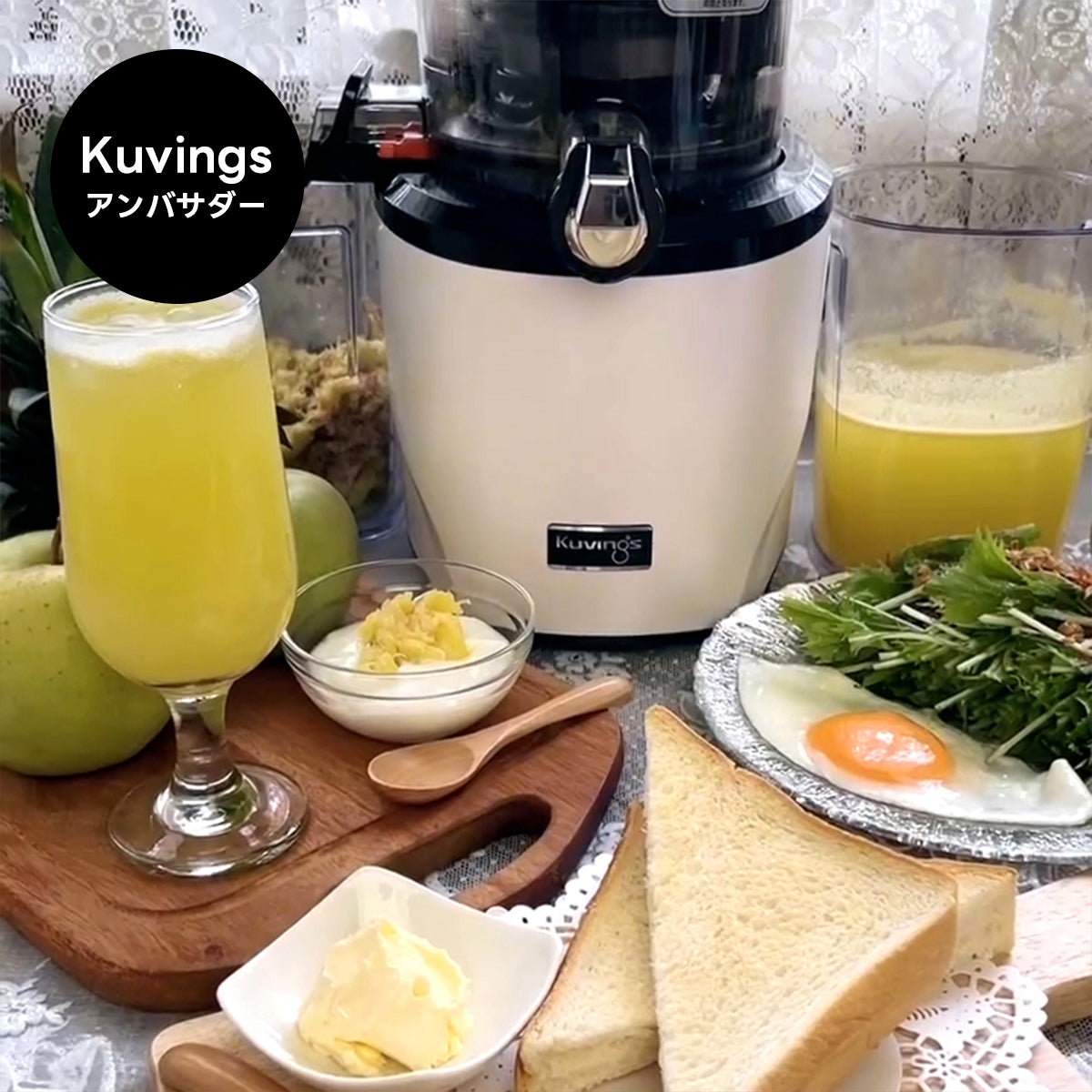 Kuvings ホールスロージューサーは、すべての材料を広い投入口に入れて、じっくり押して搾る石臼式で栄養素の損失を抑え、材料本来の味を引き出します。