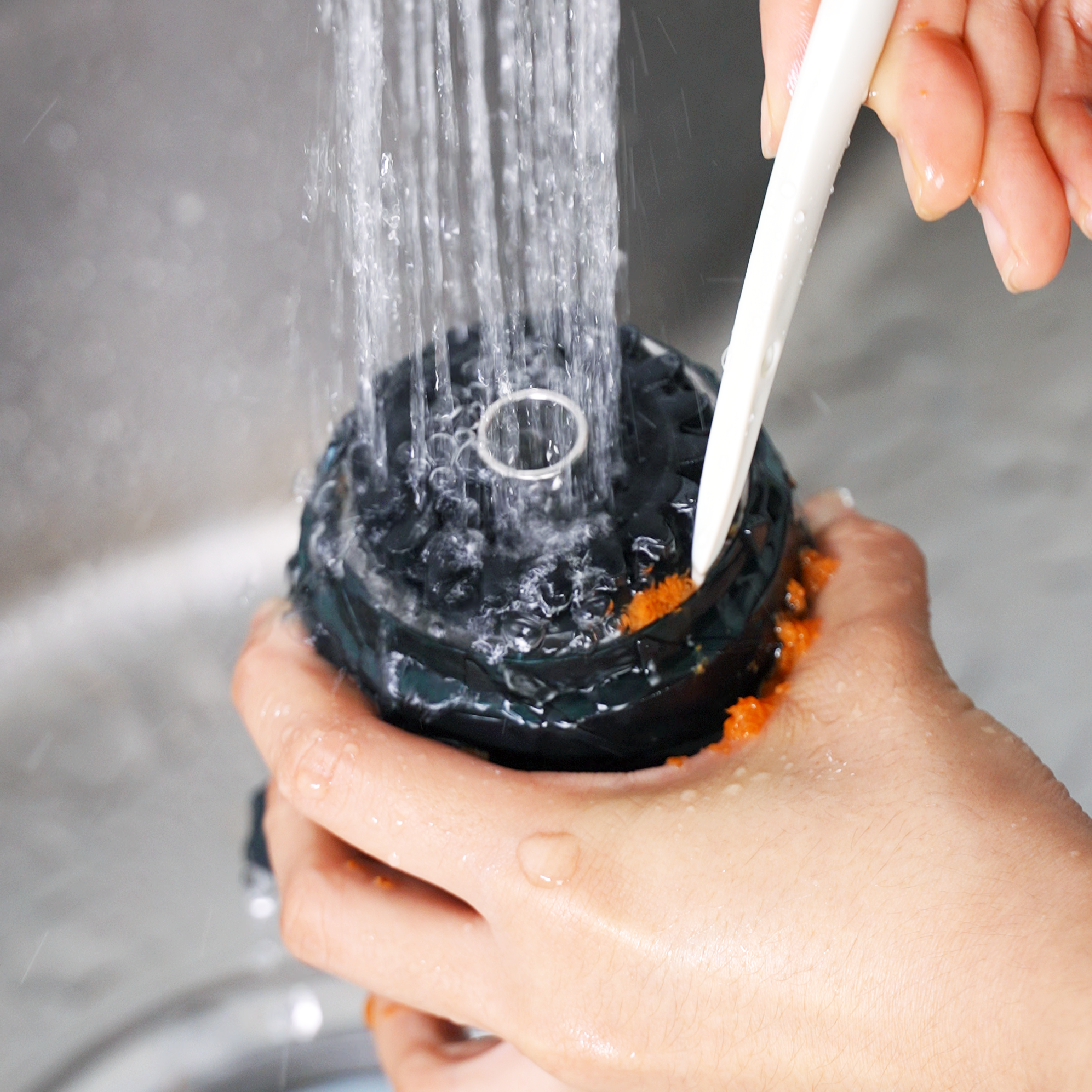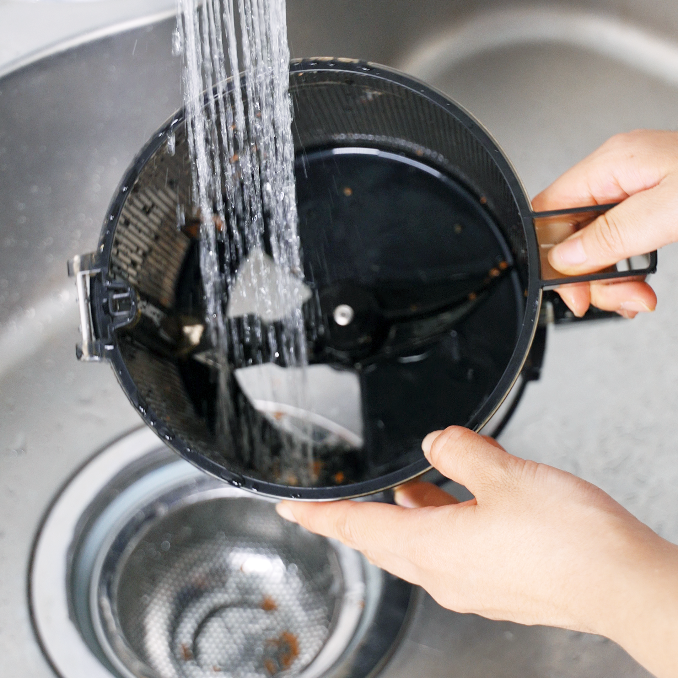 すすぐため、ジューサーを水で洗い流します。搾った後はすぐにすすいでください。