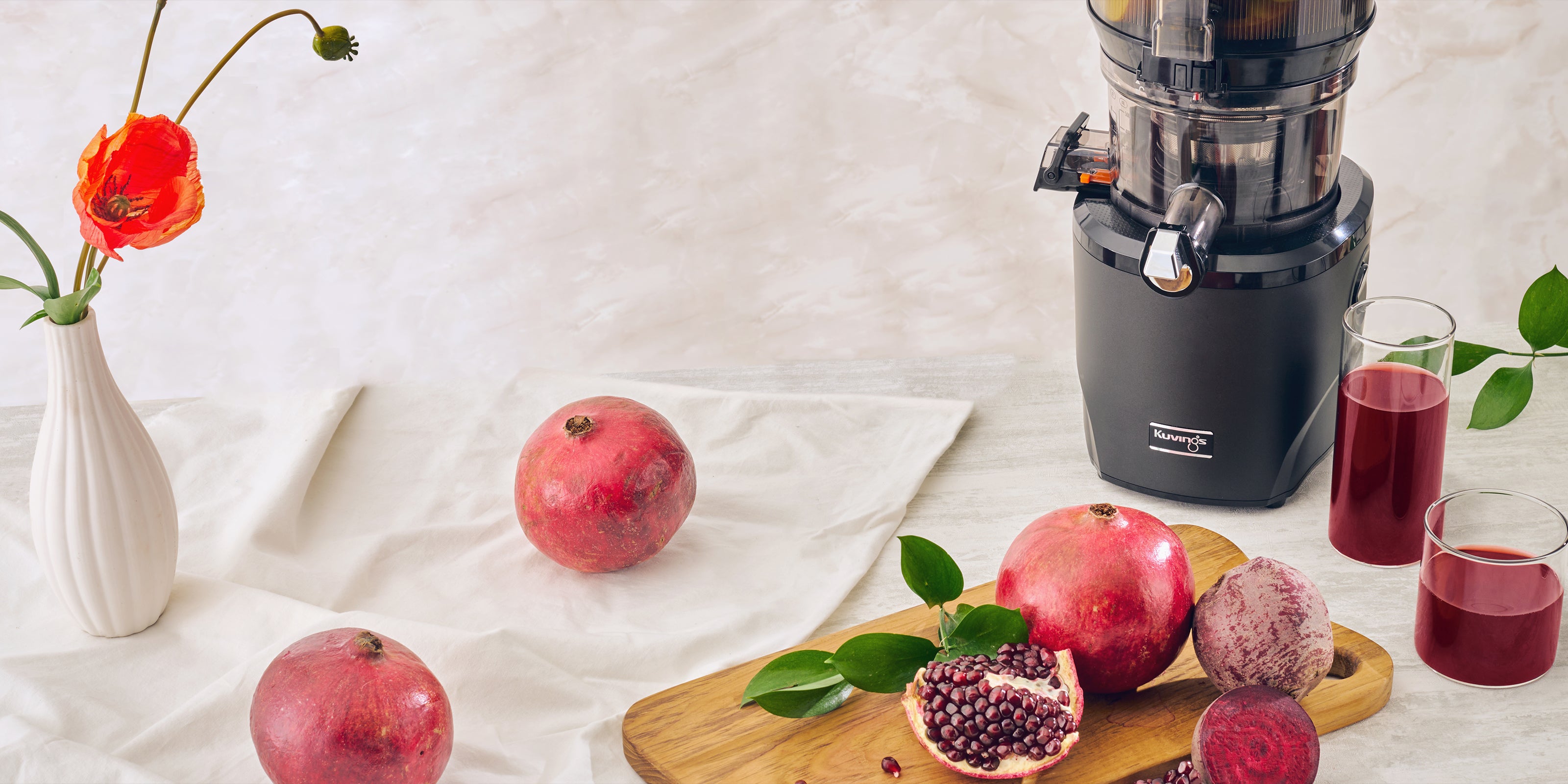 スロージューサーの優れた品質はジュースの品質に反映され、高速ジューサーよりも優れています。さらに、特許取得済みのKuvingsのスロージューサーは、垂直スクリューを使用して、食材をよりしっかりと搾汁します。 酸化が低いため、素材のビタミン、酵素、栄養素の維持に役立ち、健康的でおいしいジュースがお楽しめます。