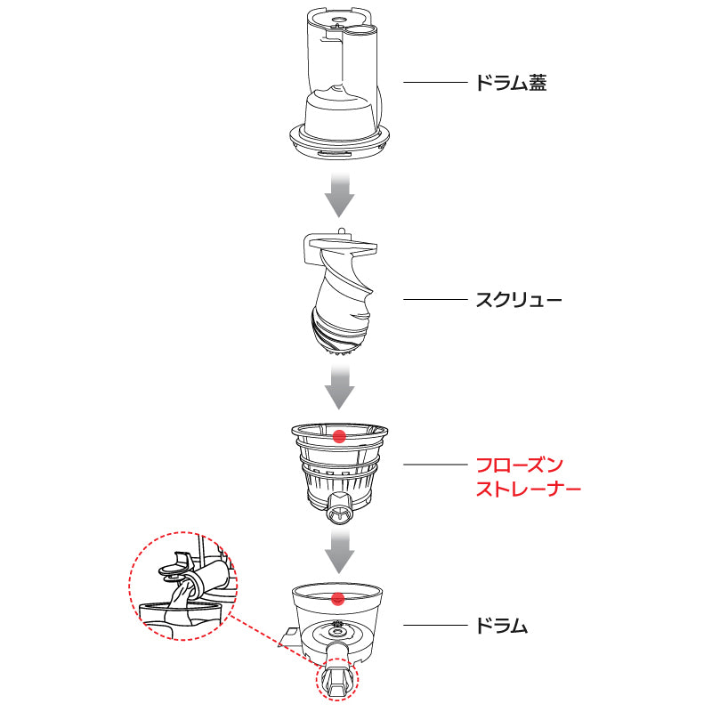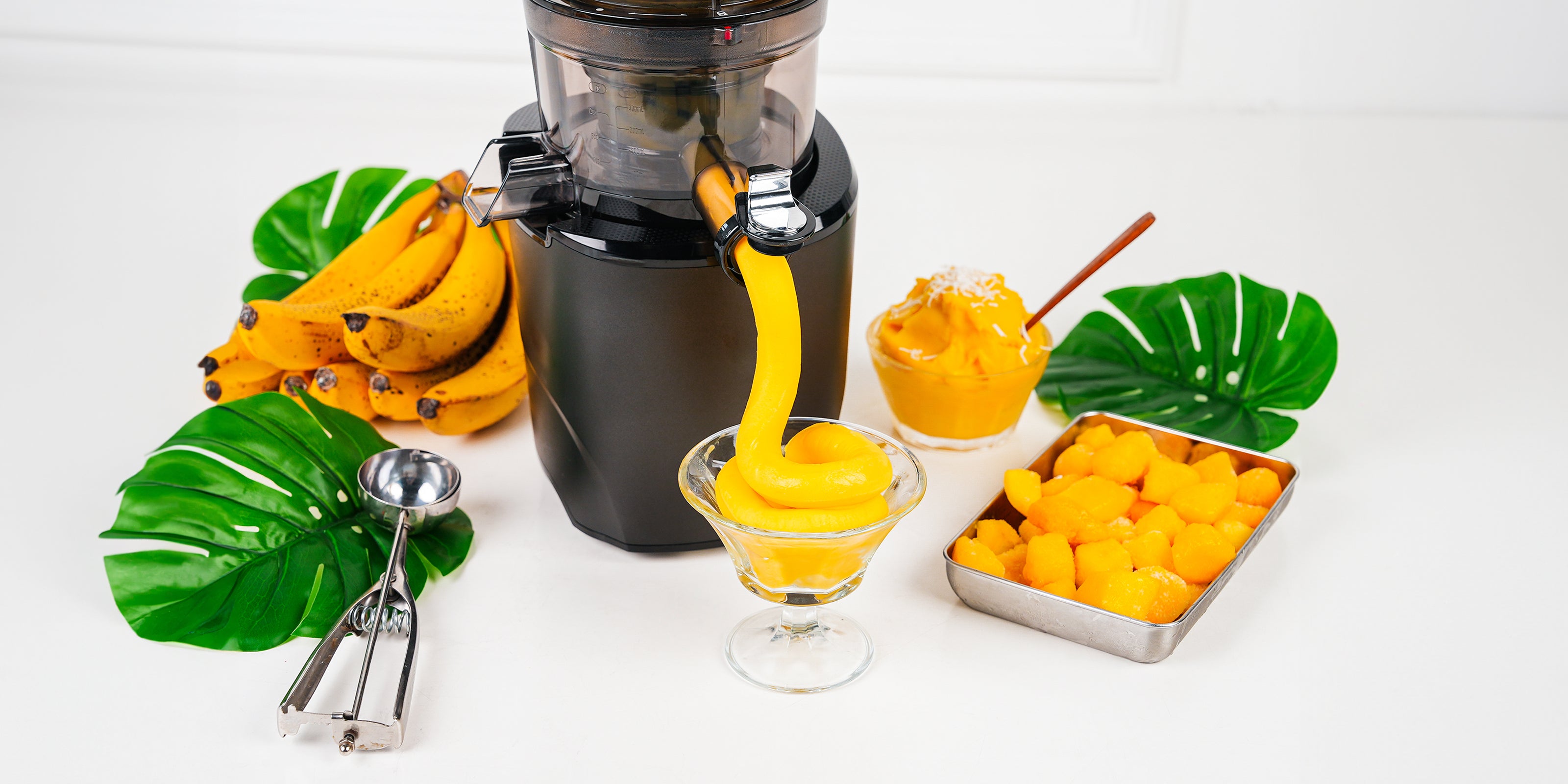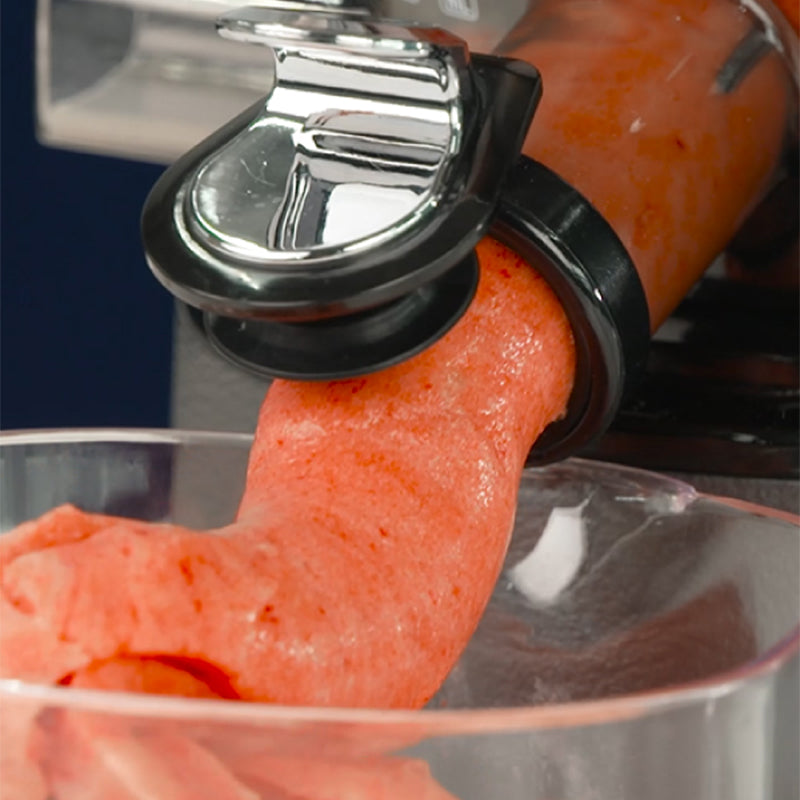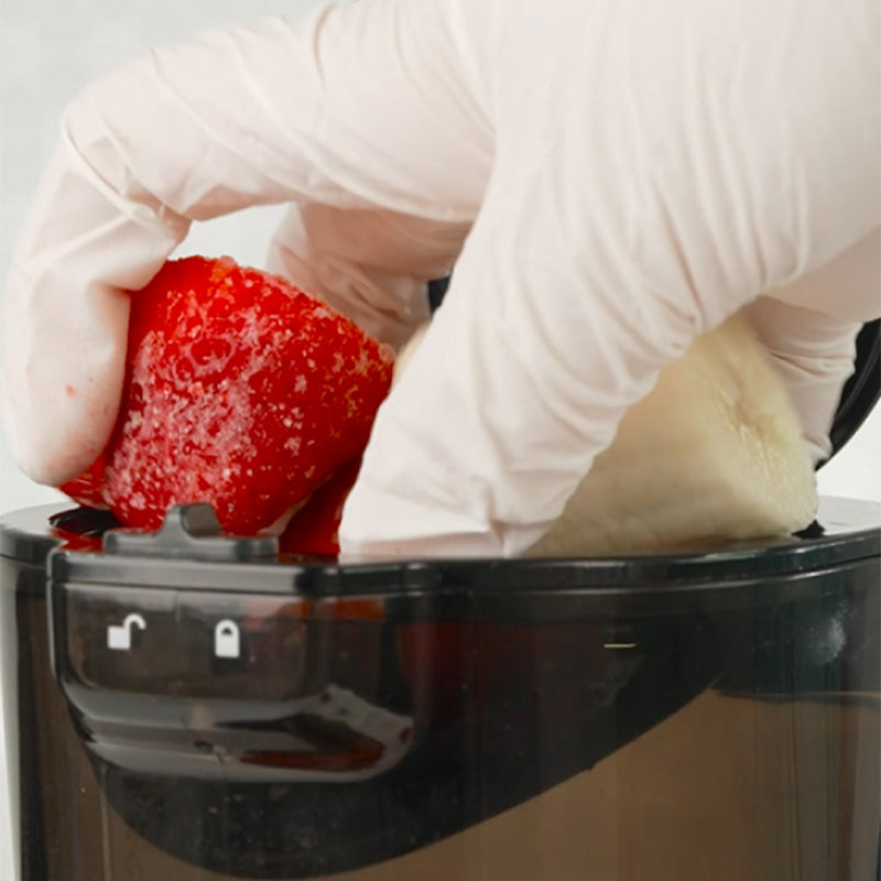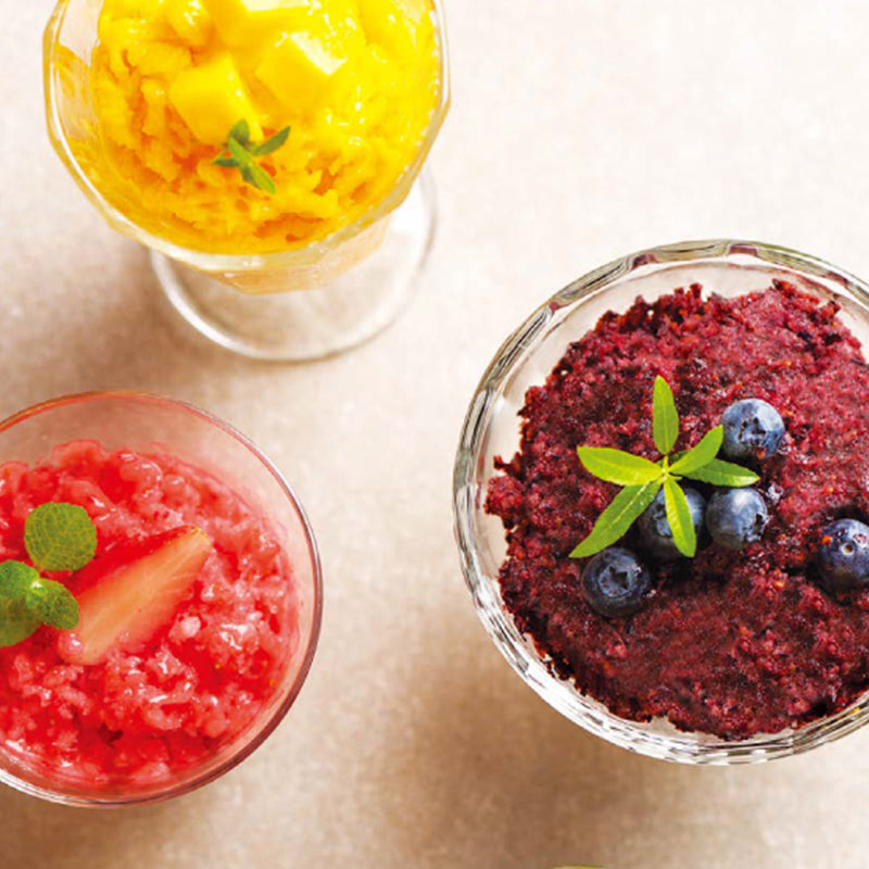 フローズンストレーナーは、材料を混合し、滑らかでクリーミーなソルベの食感を感じることができます。フローズンストレーナーは、冷凍(凍らせた)フルーツ専用です。冷凍(凍らせた)フルーツは材料によっては、常温で5~20分程解凍した後、適量(少量ずつ)を間隔を空けてゆっくり投入してください。誰でも簡単に楽しめるシャーベットを作るためのガイドをご紹介いたします。