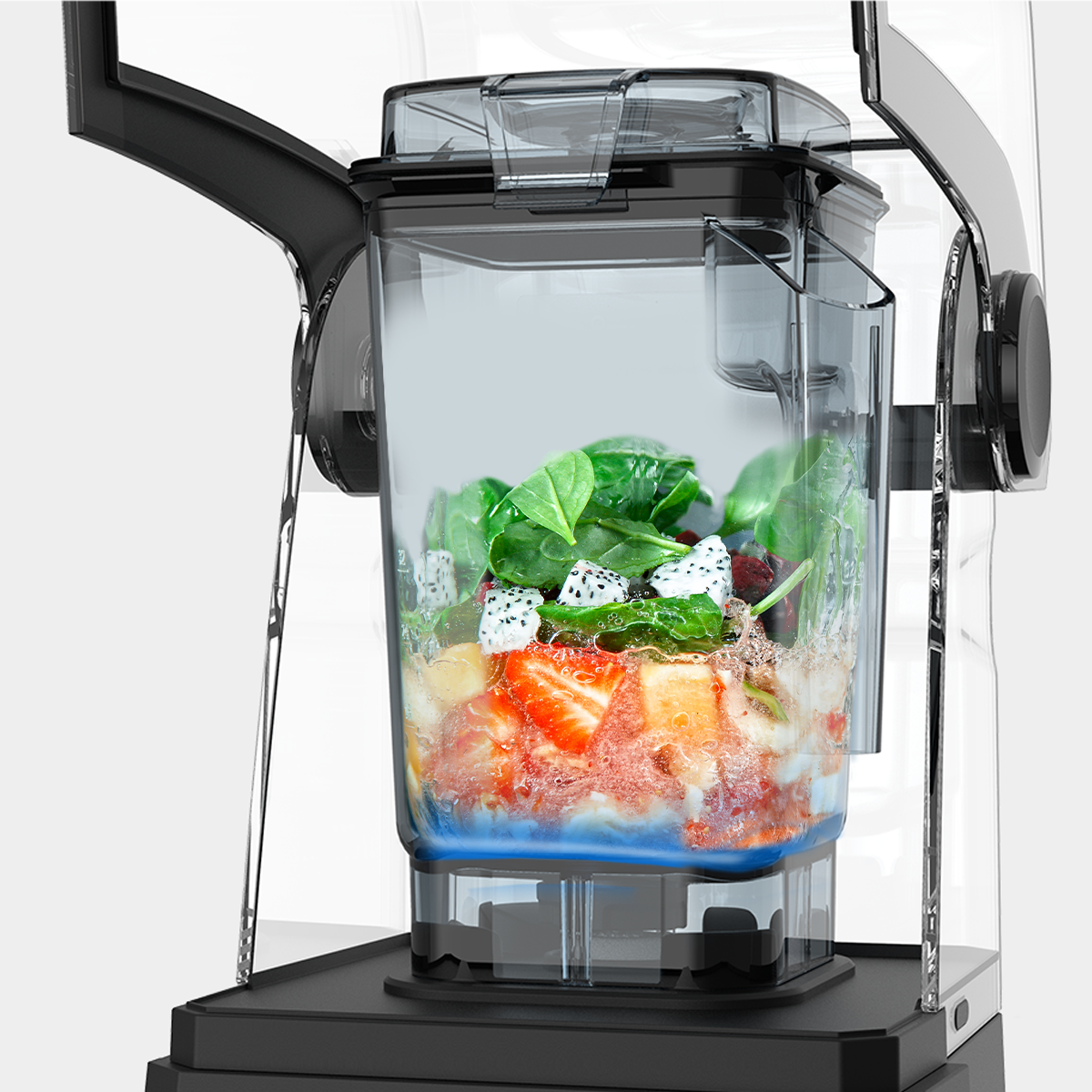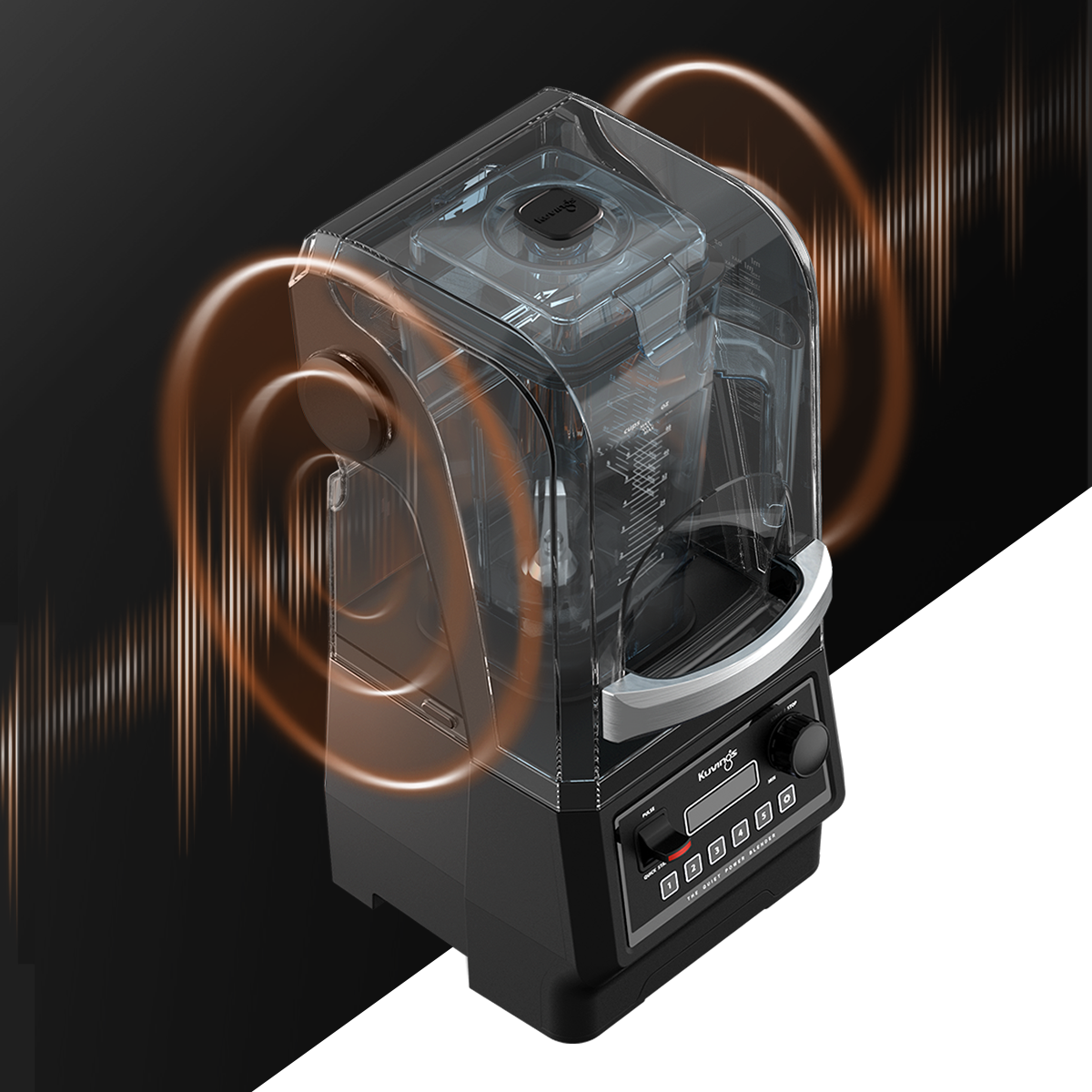 モーターや刃、本体にクビンスならではの騒音低減技術を適用し、特殊設計された防音カバーを追加適用することで革新的な低騒音・低振動の超高速ブレンダー性能を実現されました。なお、騒音・振動低減のため耐久性に優れたトライタン素材を使用し、屋内店舗での使用にも適合します。