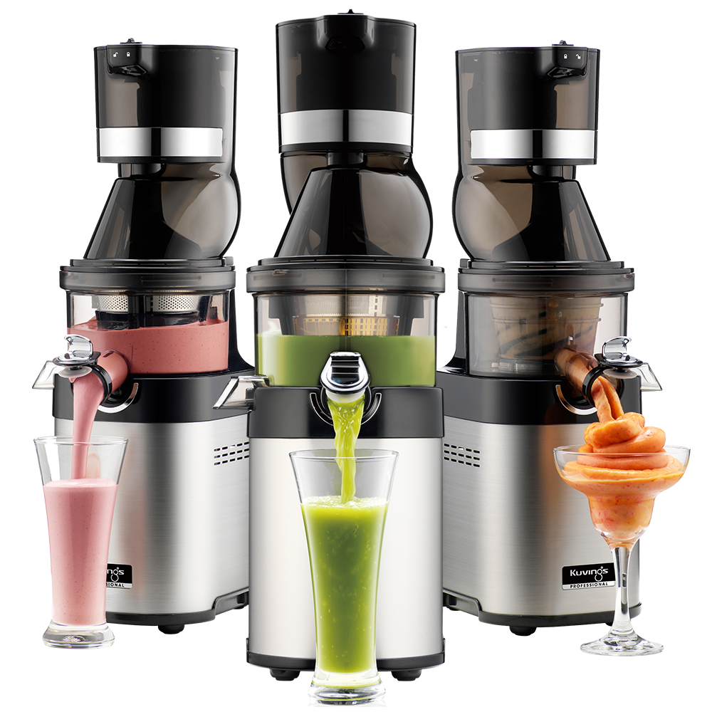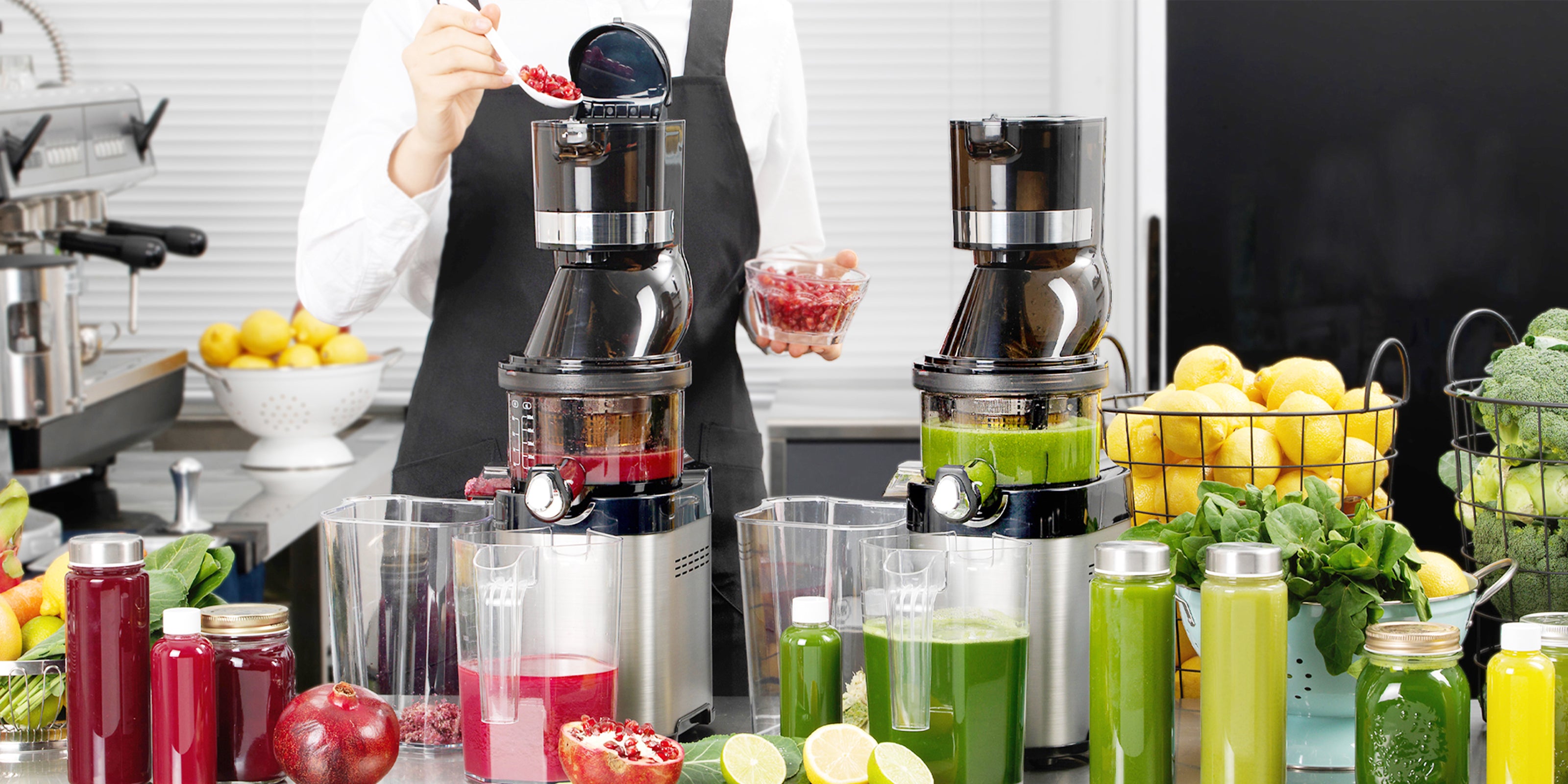 カフェやレストラン、ジュースバーなどに導入されている、24時間連続使用可能な業務用プレミアムホールスロージューサーです。