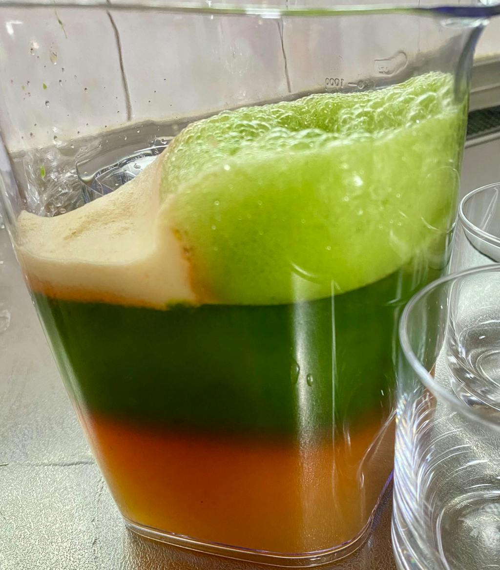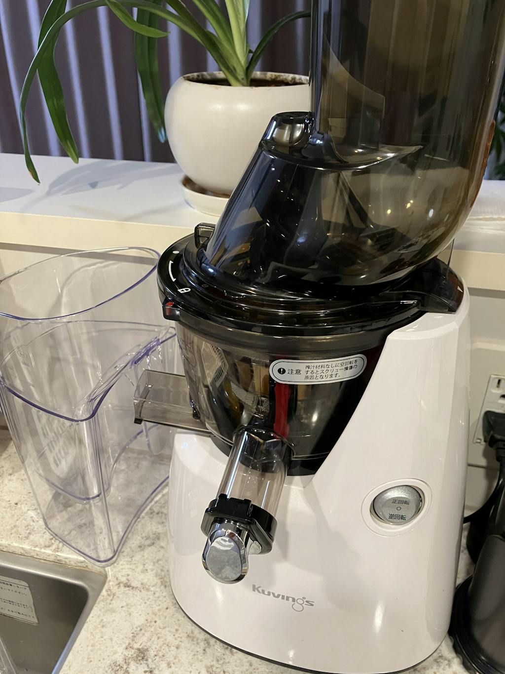 こちらの製品は、省スペースでも置くことが可能で、洗練されたデザインとなっております。半透明なので、投入した材料が搾汁される様子が確認できます。