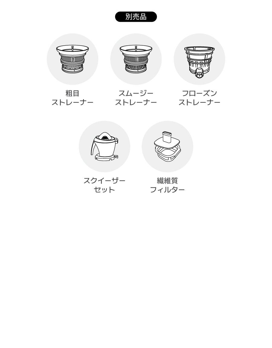 自社開発の高性能、高品質のジューサー専用モーターの強い回転力によりストレスなくジュースを搾ることが出来ます。